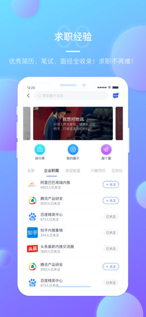 全国高校联合构建,打造有趣有料的校友圈子,助力毕业生顺利内推求职;